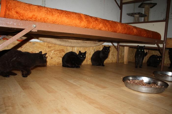 Man muss sich bei der Aufnahme eines ehemal. Container-Langsitzers auf jedenfall bewusst sein, dass es ein sehr, sehr weiter Weg sein kann bis man ansatzweise eine Katze hat, die normal in der Wohnung umhergeht und nicht davon läuft. Wir reden da von mehreren Monaten und länger! Anfangs werden sie sich verkriechen (beliebt sind unterm Bett oder dem Sofa) und wenn man Glück hat, sieht man sie mal huschen. Bis zum Anfassen kann eine noch viel längere Zeit vergehen oder auch nie möglich sein! Ihr müsst auch bedenken, dass die Containerkatzen Lucy nun schon sehr lange kennen und wissen, dass keine Gefahr von ihr ausgeht. Sollte eine bei euch einziehen, dann wäret ihr zum einen eine neue Person und zum anderne außerdem eine neue Umgebung, was für so manch "normale" Katze schon ein rießen Stress ein kann.