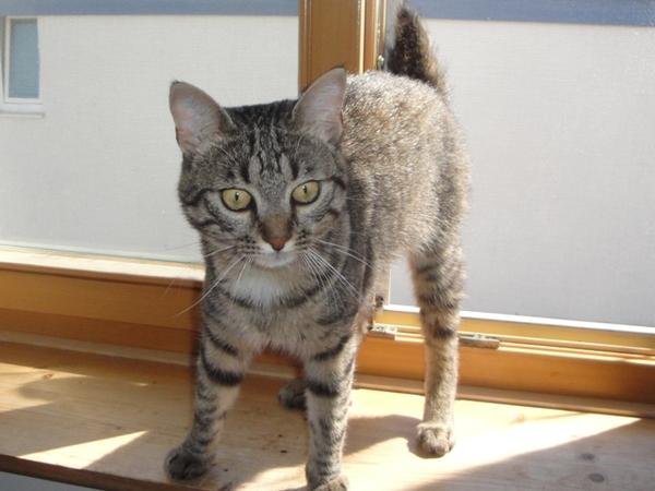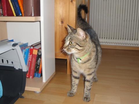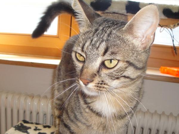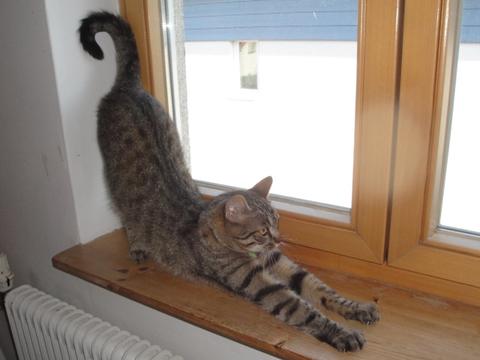 Ob Lio und die anderen Katzen noch Freunde werden, weiß ich noch nicht. Jedenfalls vergisst er schon manchmal andere anzuknurren und sitzt auch ab und zu neben Scherona am Fensterbrett. Das kleine Lisal will immer mit ihm spielen und prinzipiell aus seiner Schüssel fressen. Da knurrt er noch und hebt die Tatze. Das Lisal weiß dann schon, dass sie besser von Tannen weicht.
