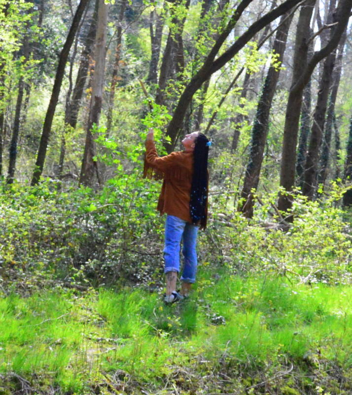 Claudia in Astgabeln gesteckt, damit ich mit dem Màusekind am Foto sein kann
