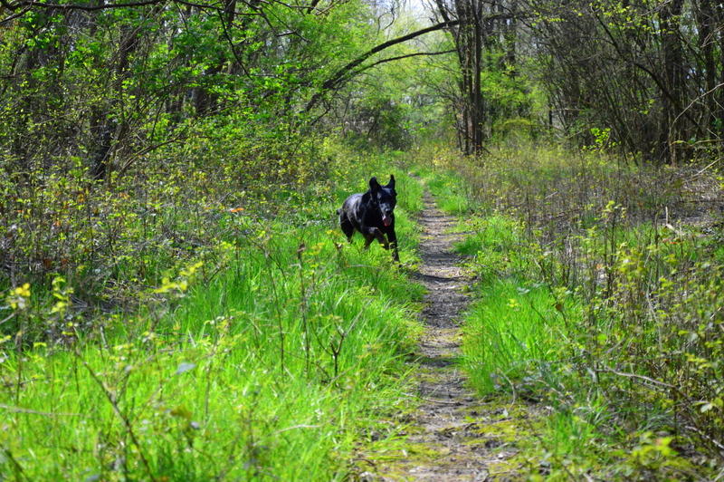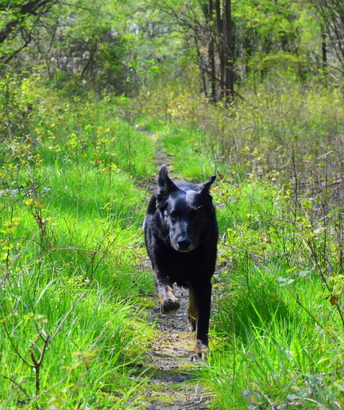 dann war ich mit Adessa den Waldweg entlang, wo man nach Herzenslust springen und laufen kann