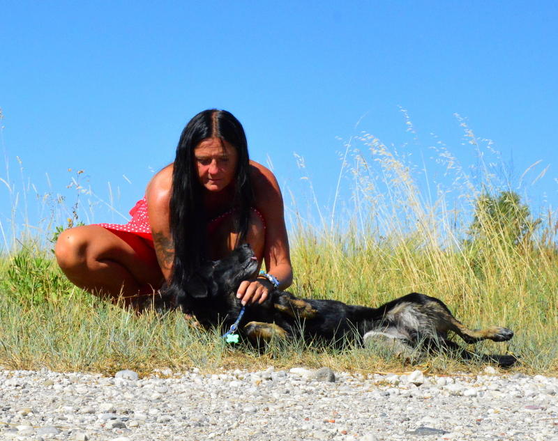 Ambra, 7 Jahre alt. Schon kastriert. Hatte keinen Kontakt zur Aussenwelt, also auch nicht zu Hunden (ausser Lucky). Kennt auch keine Leine