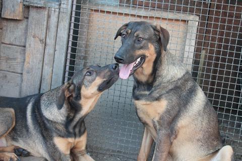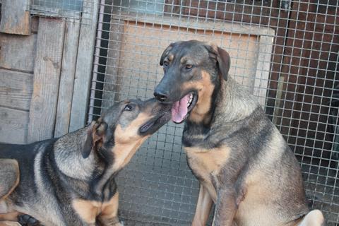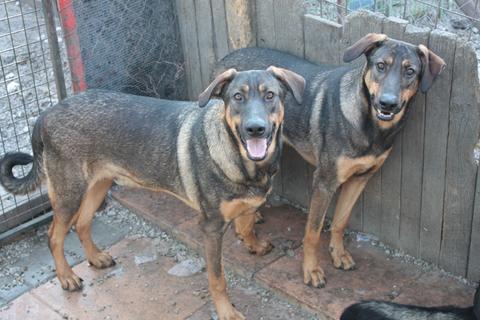 TAKO  und TALLO sind 2 mittlerweile ca. 16 Monate alte, kastrierte Schäfer-Pinschermixrüden, die im Alter von 4,5 Monaten herumirrend gefunden wurde. Zwei weitere Brüder, Tamino und Taon, haben bereits ihre Familien gefunden. Die vier Geschwister müssen Furchtbares mitgemacht haben, denn sie waren bis zum Skelett abgemagert, total panisch und eingeschüchtert. Nicht nur dass sie offenbar nie gefüttert wurden, wahrscheinlich wurden sie von den Menschen auch noch geschlagen.
