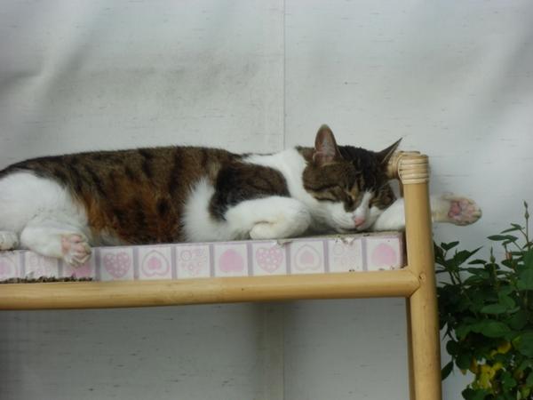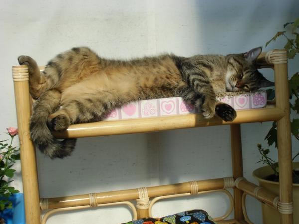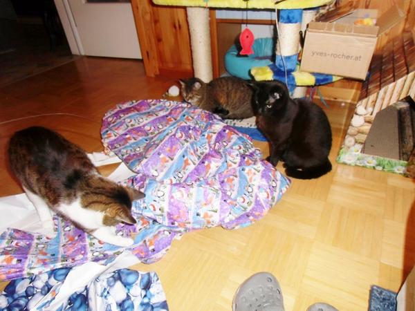 Haha - das als Stockbett zu sehen, auf die Idee bin ich noch gar  nicht gekommen :not speak: - es ist ja nur ein abgeschnittenes Bücherregal, aber alle Katzis lieben es! Hab sogar schon überlegt, den anderen Teil auch auf den Balkon zu stellen, da sind aber momentan seeeehr viele Bücher drauf - wohin damit? :alas: