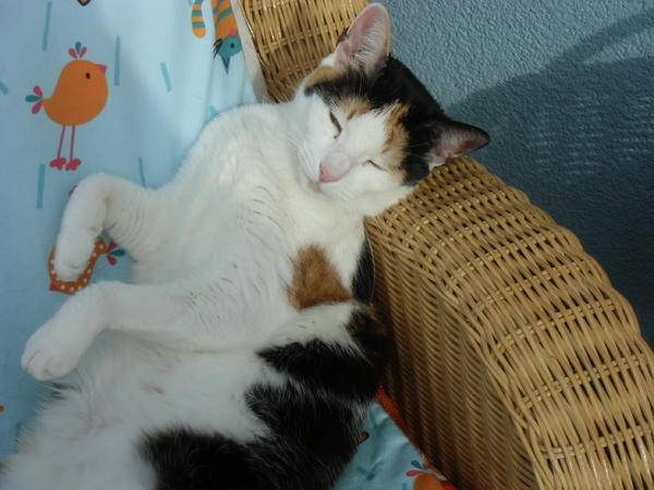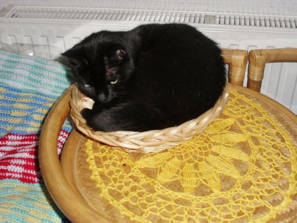 Mitzi hat sich heute einen neuen Schlafplatz gesucht - ein gaaaaaz großes Körberl .........