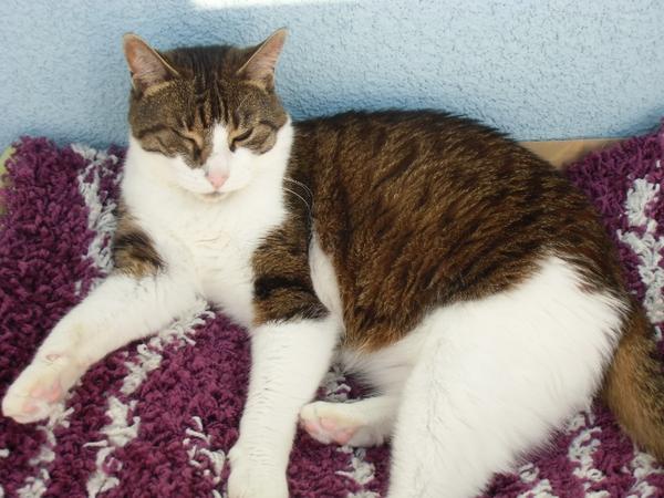 Mimily ist auch nach einem Jahr noch sehr schüchtern gegenüber Fremden und flüchtet nach wie vor auch vor mir, wenn ich einen schnelleren Schritt mach. Wenn ich wo sitze oder liege ist sie als 1. da und schmust und schnurrt was das Zeug hält!- Mein Hasenpfoti :8: