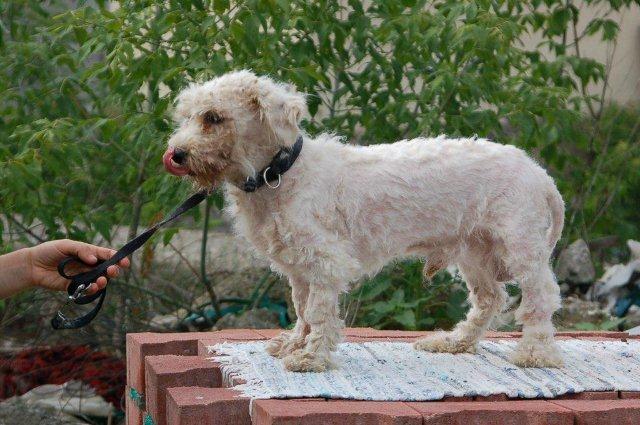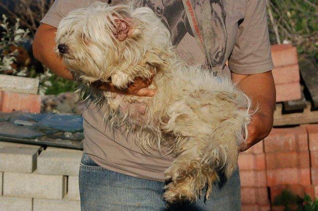 Von einem Züchter wurden 2 Malteser (eine 4 jährige Hündin und 1 Rüde) in einem ziemlich verwahrlosten Zustand abgegeben. Die 2 sahen eher aus wie Gürteltiere und konnten sich mit ihren Filzplatten kaum mehr bewegen, zum Glück wurden sie gleich von ihrer Last befreit
