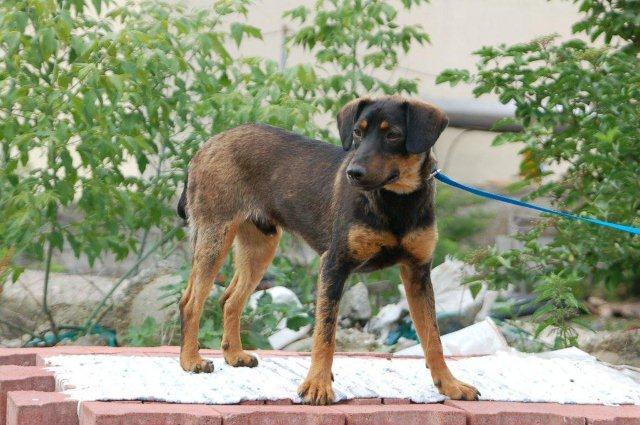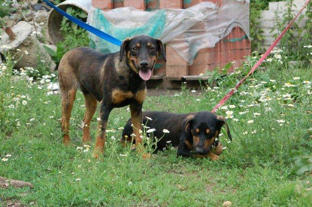 2 Pinscher/Brackenmixbrüder, ca. 7 Monate wurden gemeinsam mit ihrer hochträchtigen Mutter ausgesetzt
