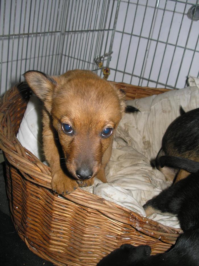 ca 7- 8 Wochen alten Welpen, und zwar der braune Alejandro, die braun-schwarze