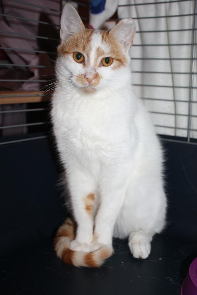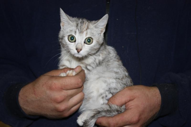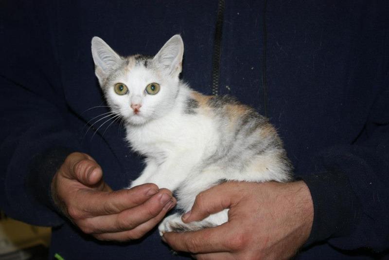 Der weiße Kater BOBBY mit den grauen Flecken wurde in der Halle im Stockwerkhaus gefunden, sie ist auch ca 10 Monate alt und kastriert.