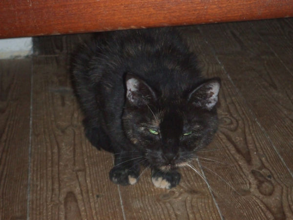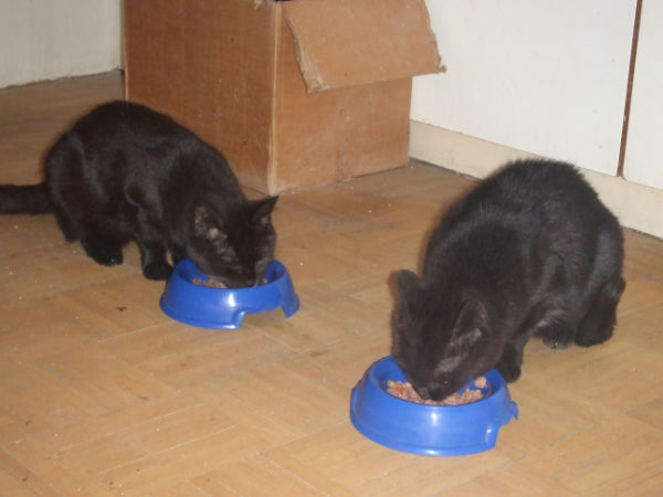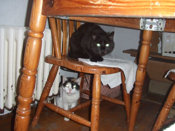 zwei schwarze (ich glaube weibliche) Miezen, scheu, ca. 8 Jahre (das sind die Jüngsten),