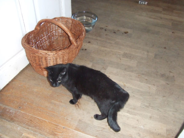 Mitzi - schwarz, weiblich, eine ganz süße, zahm, sieht aus wie eine Jungkatze, ca. 8-10 Jahre, geht wie eine