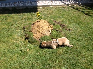 Luckys / Lampys letzte Ruhestätte mit Gismo, der seinen Freund zu vermissen scheint..... :grave: