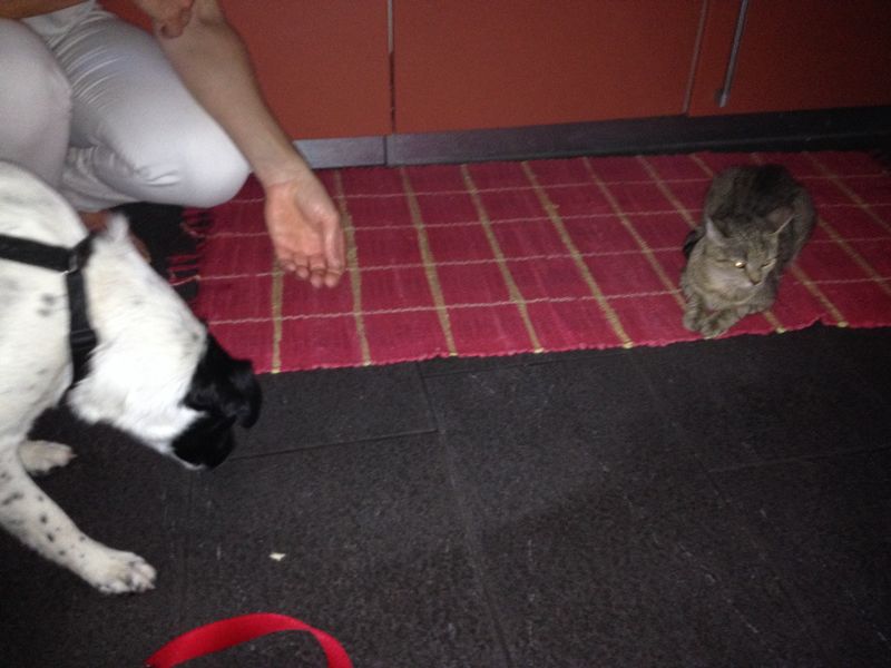 So wieder eine Nacht geschafft. Natürlich bleibt Joja nicht mehr im Untergeschoß. Da wird so fest an der Tür gekratzt...jetzt hab ich sie auch rauf lassen, Wohnzimmer zugemacht damit sie mir nicht auf die Couch hüpft. Ja dann rennt sie wie sis oft macht wenn sie was noch nicht kennt, in der Gegend umher.