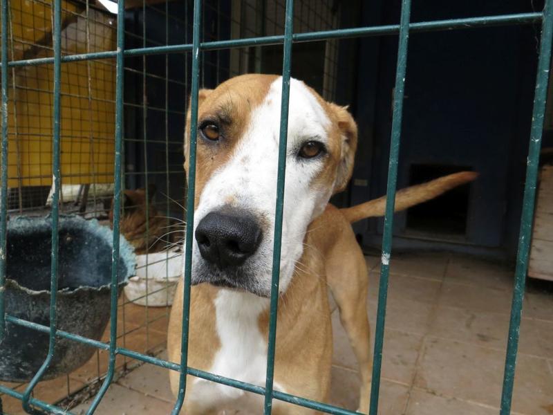 Liebe, freundlich und menschenbezogene Hündin, todtraurig im Käfig, verträglich