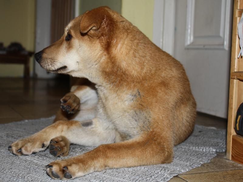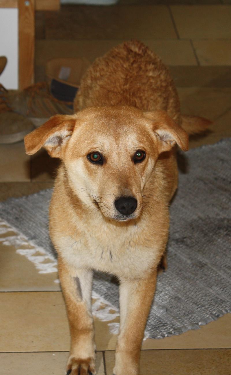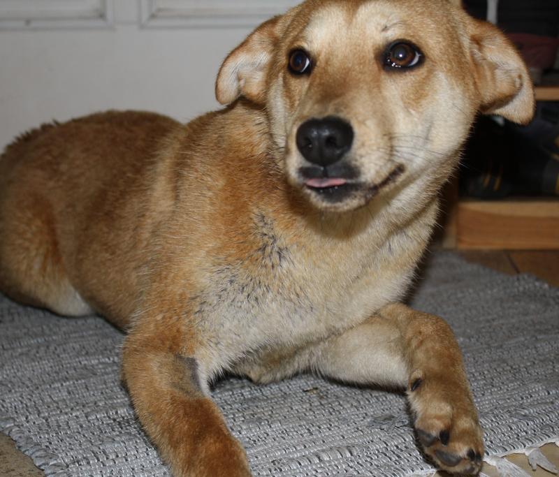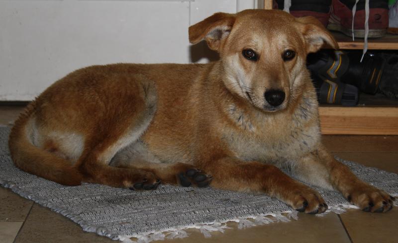 Borka ist eine 6-8 Monate junge Mix-Hündin, in deren Ahnenreihe wohl ein Shiba-Inu mitgemischt haben dürfte. Sie wiegt derzeit 12 Kilo und ist etwa Spanielgroß. Ihr Fell ist extrem dicht und semmelfarben, ihre Zunge hat schwarze Flecken.