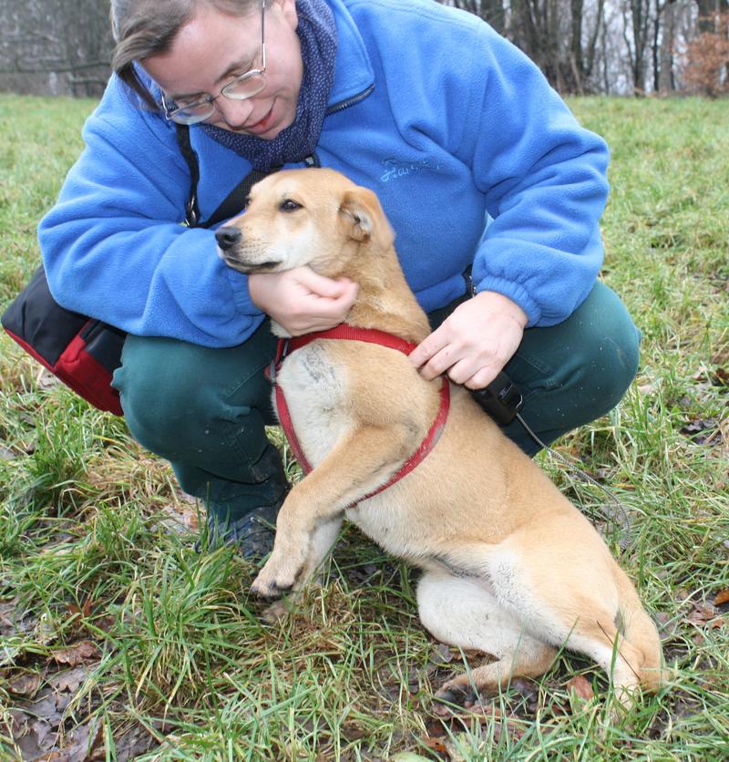 Borka lebt sich gut ein; eigentlich ein schon unheimlich braver Junghund - sie versucht immer alles richtig zu machen, hat sich schon gut an Leine und Geschirr gewöhnt und läuft am liebsten ganz knapp hinter mir, so, dass sie mir in die Fersen steigt und die Schnauze in die Kniekehlen bohrt. :alas: Der Straßenverkehr macht sie noch ein wenig unsicher, aber das wird. In der Hundezone achtet sie stets auf mich, kommt auf Ruf sofort und so schnell sie ihre Beinchen tragen. Sie spielt breits mit anderen Hunden, voll Freude. Insgesamt wirkt sie oft wie ein 8 Wochen alter Welpe, unbedarft und voll Vertrauen in die Welt, aber auch ohne Erfahrungen.
