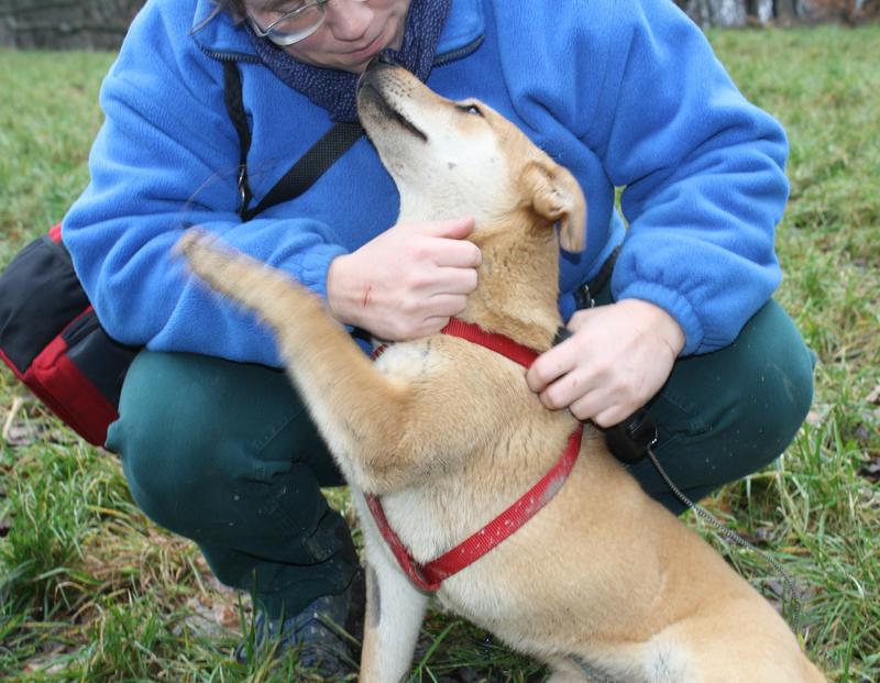 Borka ist daher erfahrungslos wie ein kleiner Welpe, aber voller Neugier auf die große Welt. Sie ist ein eher vorsichtiger Typ, aber wenn sie jemanden vertraut, folgt sie überall hin und lernt Neues schnell kennen. Sie ist jetzt schon gut auf der Straße zu führen, in der eingezäunten Hundezone darf sie frei laufen und kommt verläßlich auf Zuruf, so schnell sie kann. Sie fährt problemlos im Auto mit, akzeptiert die Schleppleine, kennt Pferde, Schweine, Kaninchen und Hühner.