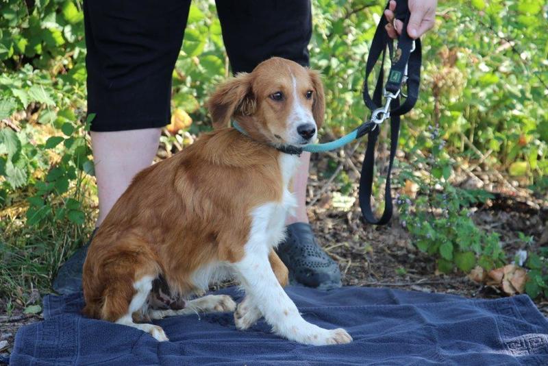 LUMY ein Barsoi/Spanielmixrüde, ca. 6 Monate alt, aus der Tötung. Der arme Bub hat sicher noch nicht viel Schönes erlebt, er schreit vor Angst wenn man mit der Leine kommt  :grave: Hoffentlich findet sich bald ein Pflegeplätzchen bei geduldigen, liebevollen Menschen