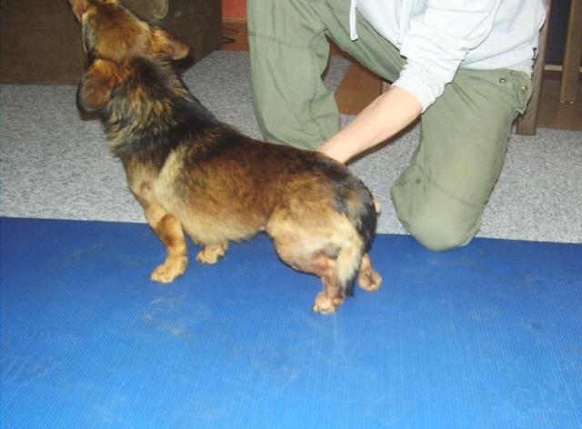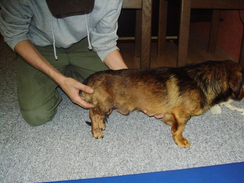 aber wir haben heute festgestellt, dass kroko gefühl in den beinen hat, dass er reagiert, dass er die beine anziehen und strecken kann, und dass er kräftig gegen widerstand dagegentritt.